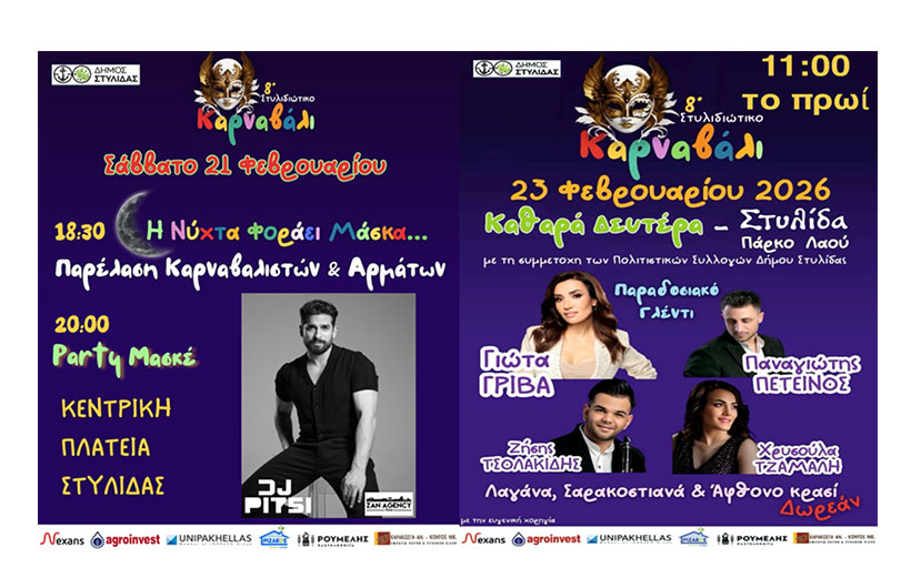 Ραντεβού 21, 22 και 23 Φεβρουαρίου 2026 στον Δήμο Στυλίδας!