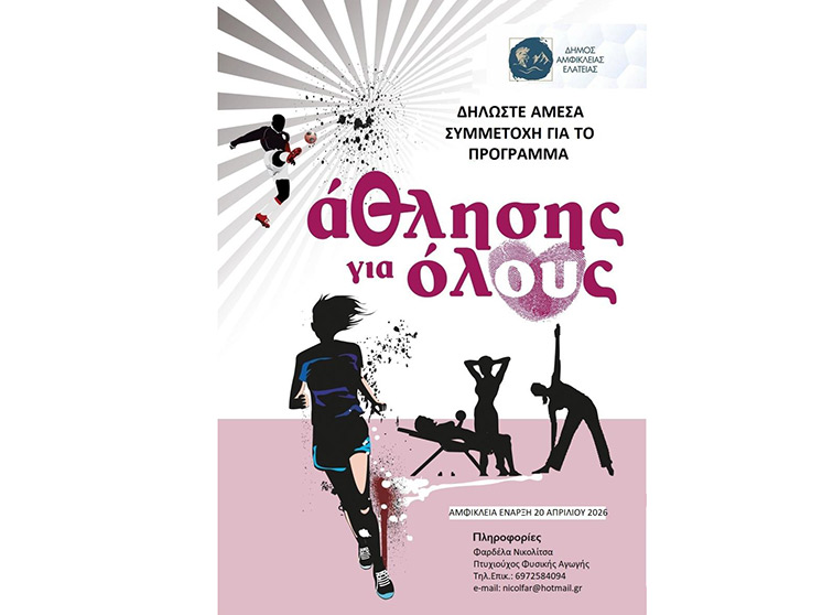 Ο Δήμος Αμφίκλειας-Ελάτειας ανακοίνωσε την έναρξη του προγράμματος “Άθληση για όλους”.