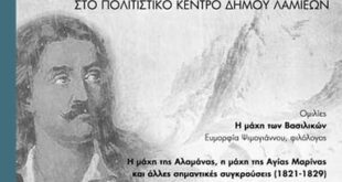 Εκδήλωση με θέμα: «Οι μάχες της Επανάστασης στη Φθιώτιδα» στο Πολιτιστικό Κέντρο του Δήμου Λαμιέων