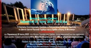 Στο Αρχαίο Θέατρο του Δίου στις 25/6/2025, με ελεύθερη είσοδο Μία συναυλία υπό την αιγίδα του Δήμου Κατερίνης για τα 12 χρόνια του Κέντρου Συμβουλευτικής Γυναικών και αφιερωμένη στη μνήμη της αδικοχαμένης Ελένης Τοπαλούδη Με αφορμή τη συμπλήρωση 12 χρόνων λειτουργίας του Κέντρου Συμβουλευτικής Γυναικών Δ. Κατερίνης, το Μουσικό Σχολείο …