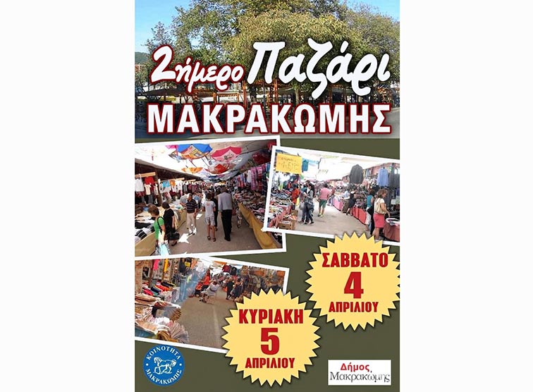 Στις 4-5/4/2026 Το διήμερο Παζάρι Μακρακώμης θα πραγματοποιηθεί το Σαββατοκύριακο, 4 & 5 Απριλίου 2026.