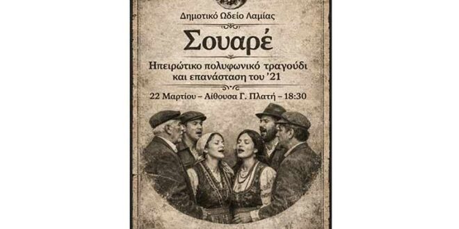 Δημοτικό Ωδείο Λαμίας: Απογευματινό Soiree – «Ηπειρώτικο Πολυφωνικό Τραγούδι και Επανάσταση του ΄21»