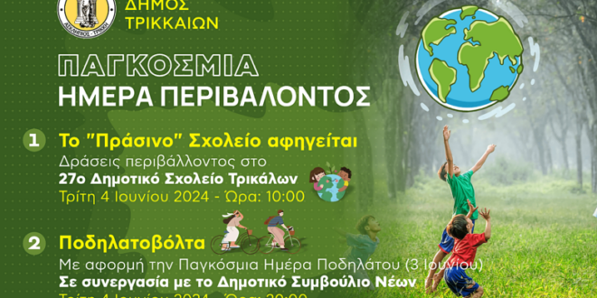 Ετσι, η πρώτη εκδήλωση πραγματοποιείται στο 27ο Δημοτικό Σχολείο Τρικάλων, όπου από τις 10 το πρωί, οι ίδιοι οι μαθητές θα παρουσιάσου το «Πράσινο Σχολείο». Στη συγκεκριμένη σχολική μονάδα λειτούργησαν ή λειτουργού «πράσινες» πρωτοβουλίες (φωτοβολταϊκά,ανακύκλωση, κυκλική οικονομία κ.α.) που αποτελούν μια σημαντική πιλοτική δράση στο πλαίσιο της καινοτομίας για το περιβάλλον.