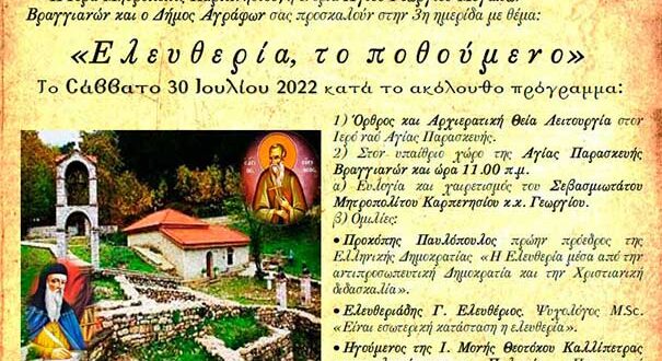 Την 3η ημερίδα διοργανώνει η Μητρόπολη Καρπενησίου, η ενορία Αγίου Γεωργίου Μεγάλων Βραγγιανών και ο Δήμος Αγράφων. https://www.youtube.com/watch?v=sQS_mwvqSZM