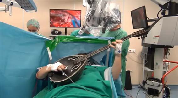 Το μουσικό όργανο στα χέρια του 37χρονου Δημήτρη Κύρτσου «σπάει» την ησυχία που συνήθως επικρατεί πάνω από το χειρουργικό τραπέζι και η επέμβαση εξελίσσεται ενώ ακούγονται παλιές αγαπημένες λαϊκές επιτυχίες. Πριν από λίγους μήνες ο νεαρός από τη Βέροια βρέθηκε στο χειρουργείο, για επέμβαση αφαίρεσης όγκου στο κεφάλι, παίζοντας μπουζούκι.