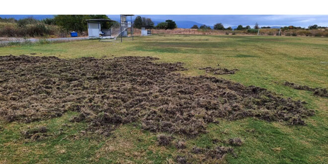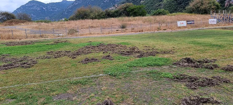 Μεγάλες φθορές στο γήπεδο στα Καμένα Βούρλα από αγριογούρουνα