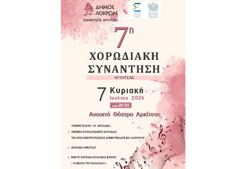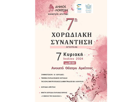 H 7η Χορωδιακή Συνάντηση Αρκίτσας Δήμου Λοκρών θα πραγματοποιηθεί την Κυριακή 7/7/2024 στο Ανοιχτό Θέατρο.
