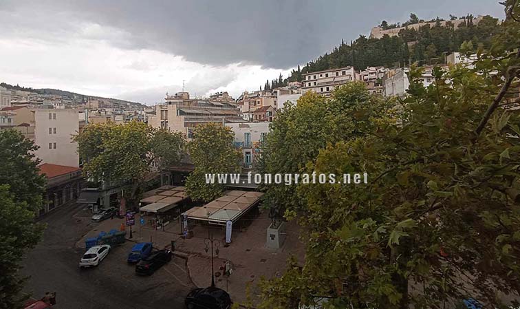 Μέσα σε λίγα λεπτά, ο ουρανός σκοτείνιασε και ξεκίνησε να βρέχει πολύ ισχυρή βροχή στη Λαμία.