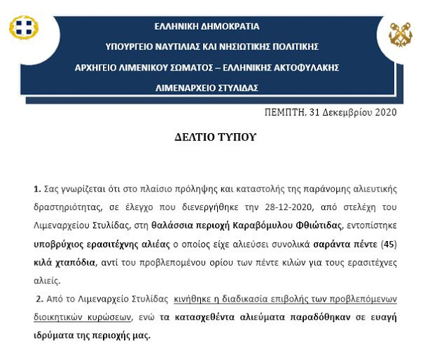 Δείτε την ενημέρωση από το Λιμεναρχείο Στυλίδας για το ερασιτέχνη ψαρά που από ότι φαίνεται ξεπέρασε κατά πολύ το επιτρεπόμενο όριο αλιείας χταποδιών στην περιοχή του Καραβομύλου.