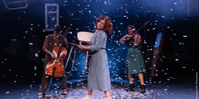 Eπι σκηνής η αέρινη Μιρέλλα Πάχου τραγουδά, παίζει ακορντεόν και όχι μόνο. Στο βιολί ο Αλέξανδρος Ιακώβου.