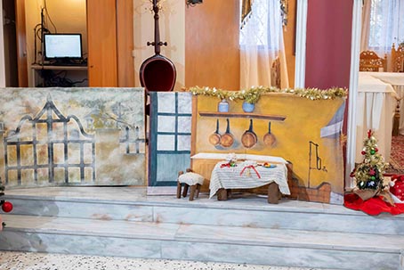 Αρχικά οι μαθητές και οι εκπαιδευτικοί με τους γονείς τους, εκκλησιάστηκαν στο Ιερό Παρεκκλήσιο του Αγίου Ελευθερίου και ακολούθως πραγματοποιήσαν την Χριστουγεννιάτικη γιορτή του Νηπιαγωγείο, στο ανακαινισμένο Ενοριακό Πνευματικό Κέντρο του Ναού, το οποίο εγκαινίασε με αγιασμό ο Σεβασμιώτατος Μητροπολίτης Φθιώτιδος κ. Συμεών, μόλις δύο ημέρες πριν, στην εορτή του Αγίου Ελευθερίου.