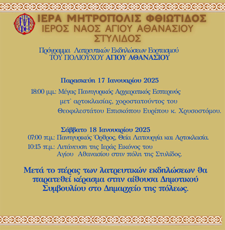 Η Στυλίδα τιμά και γιορτάζει τον πολιούχο της, Άγιο Αθανάσιο