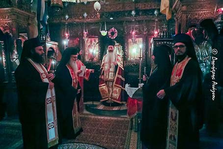 Η παρουσία Σας, Σεβασμιώτατε Πάτερ, στην Ιερά αυτή Αγρυπνία, που εσείς ορίσατε να τελεσθή εφέτος, και μάλιστα, που επιλέξατε να τελέσετε δύο σημαντικές χειροθεσίες, την Μοναχικήν Κουράν και την εις Διάκονον χειροτονίαν, ενός νέου εισερχομένου εις τας αυλάς και τας τάξεις της Εκκλησίας μας, μας τιμά όλους εμάς τους Πατέρας της Ιεράς Μονής Αγάθωνος, αλλά και όλους τους προσερχομένους Αδελφούς μας, εις την μεγάλην και ξεχωριστήν εορτήν και πανήγυριν.