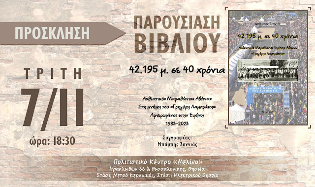 Στις 7 Νοεμβρίου η νέα βιβλιοπαρουσίαση του Ορχομένιου δημοσιογράφου κ. Μπάμπη Ζαννιά στο Πολιτιστικό Κέντρο "Μελίνα στο Θησείο https://www.youtube.com/watch?v=XFvnkwNE4IQ&list=PLpwguDsEhzmAOdol0iqFJufk6uQXqba1v&index=65&t=12s