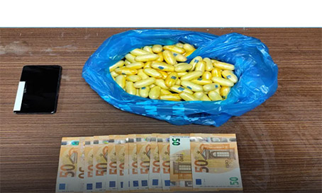 Η ανωτέρω ποσότητα κατασχέθηκε, αφού ο κατηγορούμενος την απέβαλε σταδιακά με φυσικό τρόπο, ενώ από την περαιτέρω έρευνα βρέθηκαν επιπλέον και κατασχέθηκαν συσκευή κινητής τηλεφωνίας και το χρηματικό ποσό των -700- ευρώ.