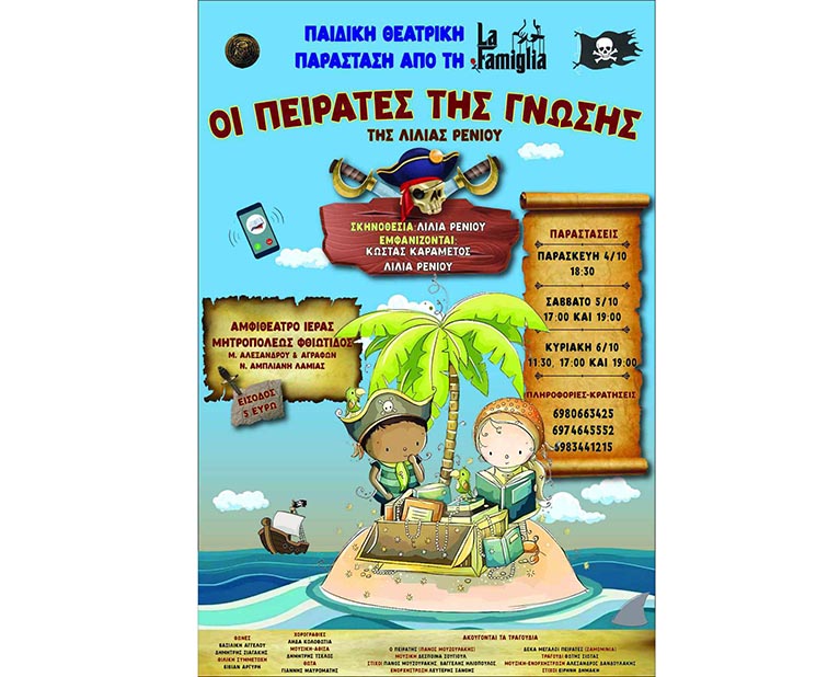 Με παραστάσεις για ένα τριήμερο θα παρουσιαστεί η παιδική θεατρική παράσταση “Οι πειρατές της γνώσης” από την γνωστή θεατρική ομάδα “La famiglia”.
