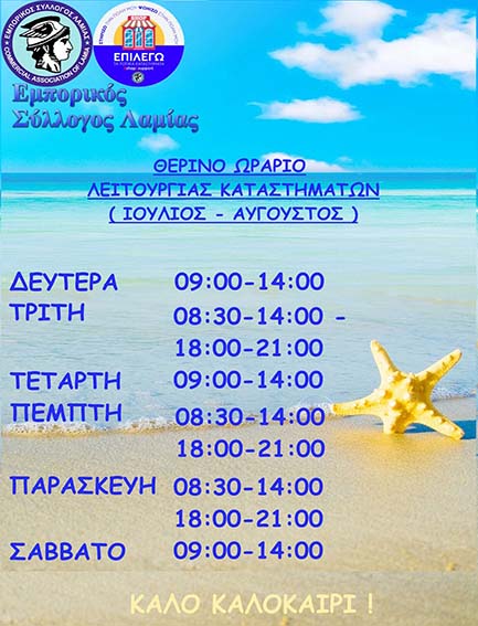 Το προτεινόμενο θερινό ωράριο λειτουργίας που προτείνει ο Εμπορικός Σύλλογος Λαμίας