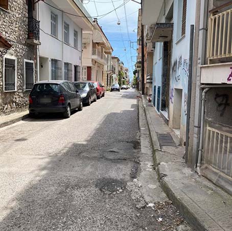 Οδός Ησαΐα, δρόμος χωρίς πεζοδρόμια, διέλευση οχημάτων με κίνδυνο πεζών . Τραυματισμός Λαμιώτισσας , προκειμένου να διευκολυνθεί διέλευση οχήματος , πτώση από λακκούβα , αιτία κατάγματος.