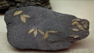 Σπάνια απολιθωμένα φύλλα ελιάς, 50.000-60.000 ετών, από τη Σαντορίνη, τα παλαιότερα ευρήματα που αποδεικνύουν την παρουσία ελαιόδενδρου στην Ελλάδα, Πινακίδες Γραμμικής Β του 14ου αιώνα π.Χ. (ακριβή αντίγραφα), με τις πρώτες γραπτές μαρτυρίες για την ελιά και το λάδι.