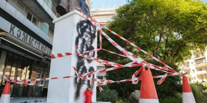 Την προτομή του αρχιφύλακα Γιώργου Λυγγερίδη, που σκοτώθηκε ενώ βρισκόταν σε υπηρεσία, στη διάρκεια επεισοδίων στου Ρέντη, βανδάλισαν άγνωστοι, το βράδυ του Σαββάτου 25/4/2026, με μαύρη μπογιά.