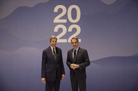 Κατά τη διάρκεια της συνάντησης με τον John Kerry συζητήθηκε η συνεργασία Ελλάδας – Ηνωμένων Πολιτειών σε θέματα αντιμετώπισης της κλιματικής αλλαγής και για την επίτευξη του στόχου περί μηδενικού ισοζυγίου εκπομπών έως το 2050.