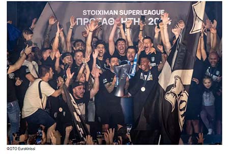 Ο Αντελίνο Βιεϊρίνια παρέλαβε το τρόπαιο από τον Μάκη Γκαγκάτση και το σήκωσε στον ουρανό της Τούμπας μέσα σε αποθέωση από πάνω από 50.000 οπαδούς που γέμισαν κάθε γωνιά του γηπέδου.