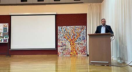 Αφορμή για την επίσκεψη του, ήταν η συμπλήρωση ενός χρόνου λειτουργίας, με θέμα «Ο θεσμός του Πειραματικού Σχολείου. 16ο Πειραματικό Δ.Σ. Λαμίας, ένας χρόνος λειτουργίας».