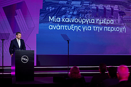 Το αναπτυξιακό πλάνο παρουσίασε ο Πρόεδρος και Διευθύνων Σύμβουλος του Ομίλου ΔΕΗ, κ. Γεώργιος Στάσσης, και χαιρετισμό απηύθυνε ο Πρωθυπουργός, κ. Κυριάκος Μητσοτάκης.