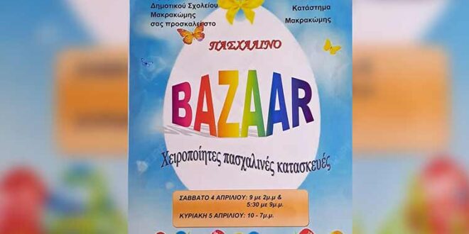 Το Σάββατο 4/4/2026 και την Κυριακή των Βαΐων 5/4/2026, ο Γονέων και Κηδεμόνων του Δημοτικού σχολείου Μακρακώμης διοργανώνει το Πασχαλινό bazaar του!