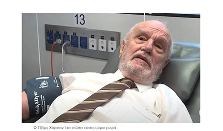 Ένας από τους πιο παραγωγικούς αιμοδότες στον κόσμο, ο Τζέιμς Χάρισον, το πλάσμα του οποίου έσωσε πάνω από δύο εκατομμύρια μωρά πέθανε στα 88 του χρόνια.