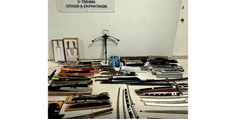 Στο πλαίσιο επιχειρησιακής δράσης του Τμήματος Όπλων και Εκρηκτικών κατασχέθηκαν 29 ξίφη, 91 μαχαίρια διαφόρων τύπων και βαλλίστρα που πωλούνταν παράνομα σε κατάστημα στο Περιστέρι