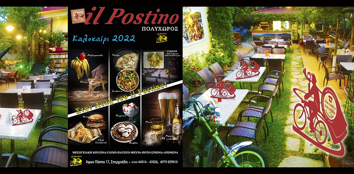 Το il Postino είναι ένα «πολυπρόσωπο» μαγαζί έτοιμο να σας ξαφνιάσει ευχάριστα, είτε με την εξαιρετικά εμπνευσμένη Μπύρα list είτε με τις προσεγμένες γευστικές προτάσεις από την ιταλική κουζίνα. Η πίτσα του κατατάσσεται σίγουρα ανάμεσα στις κορυφαίες της Φθιώτιδας