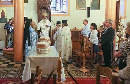 Ανήμερα της αποδόσεως της Θεομητορικής Εορτής της Κοιμήσεως της Θεοτόκου ο Σεβασμιώτατος κ. Συμεών ανηφόρισε για μια ακόμη φορά στα υψηλά βουνά της Δυτικής Φθιώτιδος και ιερούργησε στο ακριτικό όμορφο χωριό Μάρμαρα του Δήμου Μακρακώμης και στον ιστορικό Ιερό Ναό Παμμεγίστων Ταξιαρχών.