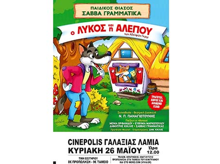 Προπώληση στο ταμείο του κινηματογράφου και στο https://www.more.com/theater/children/o-lykos-kai-i-alepou/