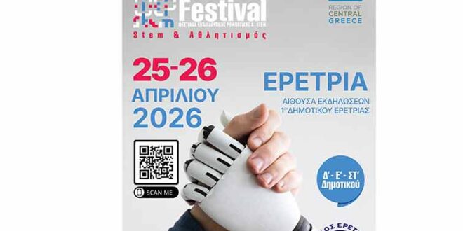 Στις 25-26/4/2026 το Φεστιβάλ Εκπαιδευτικής Ρομποτικής της Περιφέρειας Στερεάς Ελλάδας στην Ερέτρια