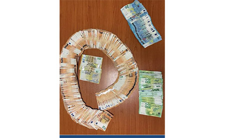 Από την επακόλουθη έρευνα στην οικία της κατηγορούμενης, βρέθηκαν και κατασχέθηκαν -35.940- ευρώ και σημειωματάριο με ιδιόχειρες σημειώσεις που αφορούσαν τις εισπράξεις ανά ημέρα.