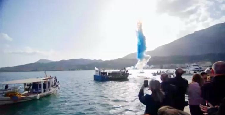 Στην συνέχεια και παρουσία πλήθους κόσμου, τελέστηκε ο Αγιασμός των Υδάτων και η κατάδυση του Τιμίου Σταυρού στο λιμάνι.