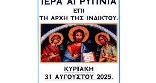 Η “Επί τη Αρχή της Ινδίκτου” αναφέρεται στην Πρωτοχρονιά της Ορθόδοξης Εκκλησίας, η οποία είναι η 1η Σεπτεμβρίου, και σηματοδοτεί την αρχή του εκκλησιαστικού έτους. Στον Ιερό Ναού του Αγίου Νικολάου στη Σπερχειάδα θα τελεστεί Ιερά Αγρυπνία “Επί τη Αρχή της Ινδίκτου” την Κυριακή 31 Αυγούστου 2025.