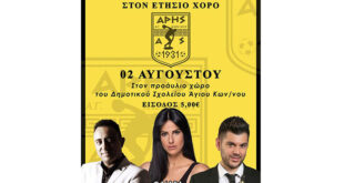Στις 2/8/2024 Η ομάδα του Α.Σ. Άρη Αγίου Κωνσταντίνου θα πραγματοποιήσει τον ετήσιο χορό του στον προαύλιο χώρο του Δημοτικού Σχολείου, την Παρασκευή 2 Αυγούστου 2024.