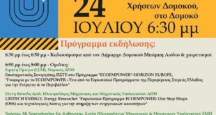 Η πρόσκληση στην ενημερωτική εκδήλωση με θέμα “EcoEmpower” που θα πραγματοποιηθεί στις 24/7/2024 στο Δομοκό