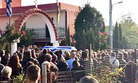Στην κηδεία, στον Ιερό Ναό Αγίας Τριάδος στον Ασπρόπυργο βρέθηκαν όλοι οι συγγενείς του αλλά και οι συναθλητές του, φορώντας τις φόρμες της εθνικής ομάδας πυγμαχίας (της οποίας ήταν μέλος και πρωταθλητής Ευρώπης ο Βασίλης Τόπαλος). Με δάκρυα στα μάτια, κρατούσαν λευκά τριαντάφυλλα για τον συνομήλικο αθλητή τους.