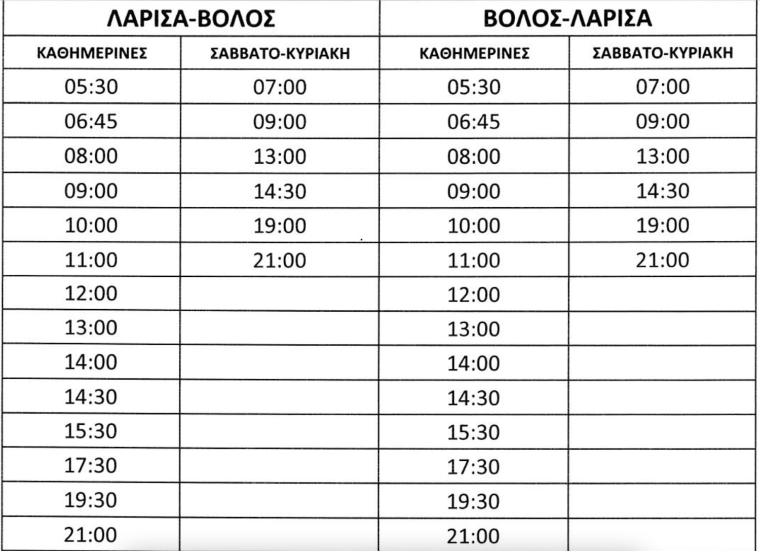 Το Υπεραστικό ΚΤΕΛ Λάρισας Α.Ε. λαμβάνοντας υπόψη την αυξημένη επιβατική κίνηση προσθέτει δρομολόγια στη γραμμή Λάρισας – Βόλου και ενημερώνει το επιβατικό του κοινό ότι από την Παρασκευή 3 Νοεμβρίου 2023 τα δρομολόγια Λάρισας – Βόλου διαμορφώνονται ως εξής: