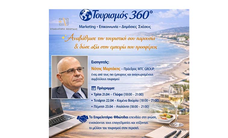 «Τουρισμός 360° – Marketing, Επικοινωνία & Δημόσιες Σχέσεις: Αναβάθμισε την τουριστική σου παρουσία – Δώσε αξία στην εμπειρία που προσφέρεις»