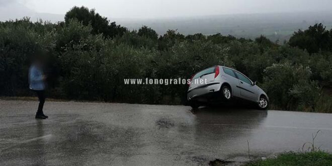 Σε μια επικίνδυνη στροφή και με τον δρόμο να είναι ολισθηρός, ο οδηγός ενός οχήματος μεσαίου κυβισμού χρώματος γκρί, έχασε τον έλεγχο του οχήματος του και βρέθηκε εκτός δρόμου στην απέναντι πλευρά. Το συμβάν έγινε το μεσημέρι στις 15/10/2021.